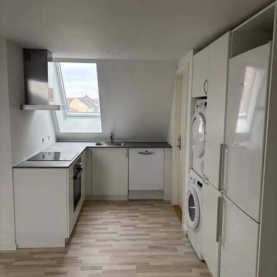 65 m², 3-room apartment, available March 1 or earlier. Løvenørnsgade 8, 4th floor left, Horsens. Rent 5,700 DKK, advance payment for water/heating 750 DKK. Total 6,450 DKK. Can be used as a shared apartment. New apartment with a large open-plan kitchen-living room. Kitchen includes appliances: built-in oven, ceramic hob, extractor hood, dishwasher, fridge-freezer, washing machine and tumble dryer. Good layout/furnishing possibilities. 2 bedrooms. Bathroom with shower, toilet and washbasin unit. Deposit 17,100 DKK. Storage room in the...