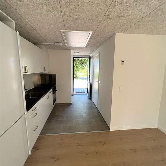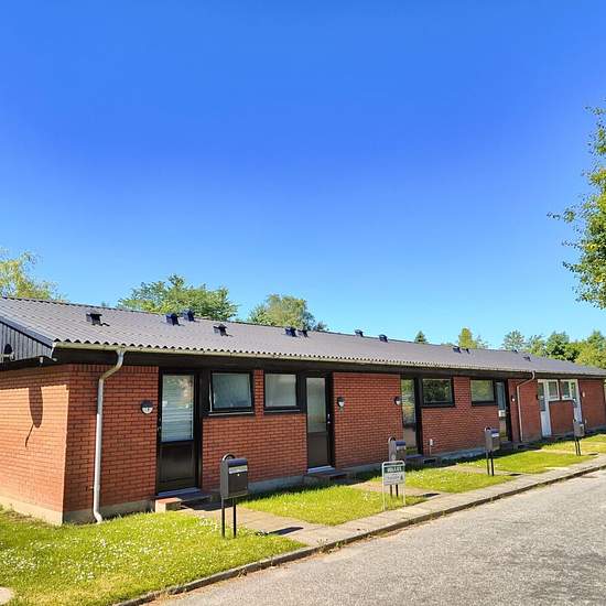 Dejlig 1-værelses rækkehus beliggende i Kjellerup. Fra indgangsdøren kommer man ind i et lille vindfang med flisegulv og skab, hvor der er gjort klar til tilslutning af vaskemaskine og tørretumbler. Herfra er der adgang til boligens badeværelse, som indeholder bruser, vask og toilet. Fra vindfanget er der desuden adgang til lejlighedens stue/køkken-alrum. Hele lejligheden er total renoveret i juni 2023 med nye gulve, skabe, køkken, fliser, lofter, osv. Køkkenet har nyt glaskeramisk komfur, indbygningsovn, emhætte, køle-fryseskab, og opvask...