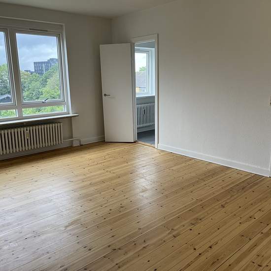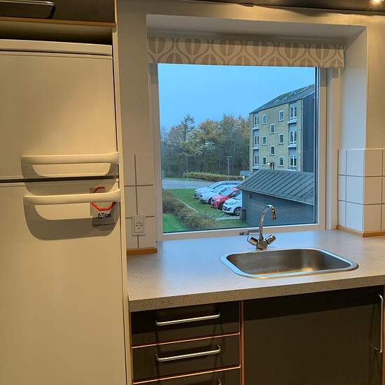 Nice, regular one-room apartment with a neat kitchen and bathroom, and a large living area with access to a terrace. Good layout. Perfect for students and singles. Light finishes and a bright, spacious apartment, well designed. Wardrobes in the entrance, etc. Lovely location on Violvej — with green areas as a neighbor and only a 5-minute walk to the International Business College and the Design School, and a 10-minute walk to the train station. Please inquire for further information.