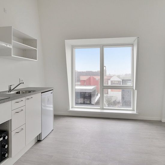 Welcome to Tigergården at Østre Stationsvej 2F in Odense C. Here we rent out 1-room apartments and a few 2-room apartments. In addition to your own home, there are several common rooms throughout the building as well as a party room in the basement. Appliances The apartments have a fridge-freezer, oven, 2-zone induction cooktops, and extractor hood. Washing machines and dryers are available in the basement. Pets Tenants can apply for permission to keep one cat. See our complete pet rules here. Parking It is possible to rent a parking spac...