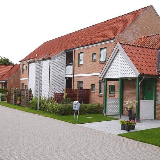Villestoftehaven consists of one- and two-story terraced houses, built in a square with a community house in the middle, which among other things helps create the framework for a strong social community. There are 35 dwellings in the complex, of which 6 are youth apartments. There is a communal laundry in the complex and the residents have their own pétanque court. Location The complex is located northwest of Odense. It is approximately 4 km to a large shopping centre, 2 km to a school and about 8 km to Odense city centre. Interior The hom...