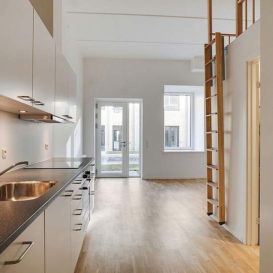At Møllevangen 1–141 you'll find 1- to 6-room apartments. So there's room for everyone and exactly the home you dream of. The smaller apartments are aimed at singles, students or young couples, while the larger apartments are ideal for families. All apartments benefit from beautiful natural light through their large windows. Several of the apartments are split over two levels, creating a natural separation between the communal living area with an open-plan kitchen and the bedrooms. Most apartments have their own balcony or terrace. Applian...