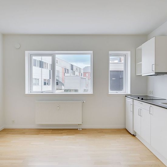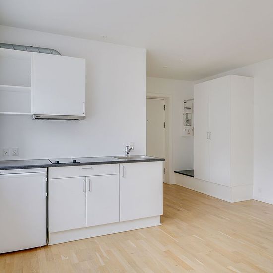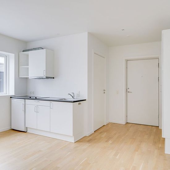 1-room Youth Apartment of 44 m² in Roskilde Rampelyset 28 ground floor, 5th, 4000 Roskilde The Dormitory Noden - Rental agreement no. 9-321-69 Welcome to Noden in Roskilde! The apartment consists of a small entrance with storage space, its own bathroom, and a living room connected to the kitchen. The kitchens include a cooking unit with two hotplates, a range hood, and a refrigerator with freezer compartment, and each apartment has a wardrobe and an associated storage room. In addition, there is the activity house, which contains communal ki...