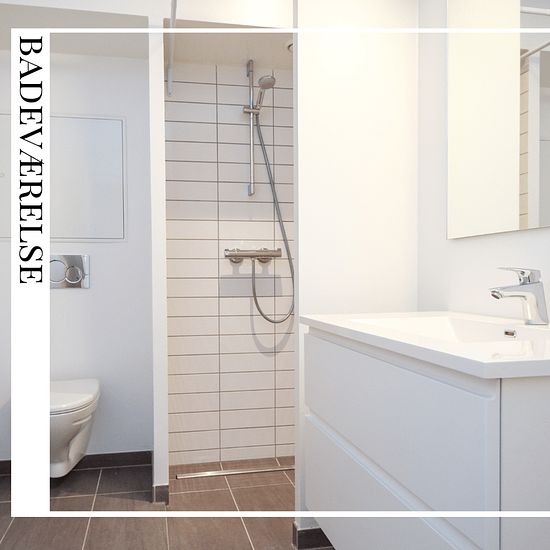 78 sqm | 2 rooms | takeover 1/7-26 This apartment is built with bright quality materials and large windows, ensuring wonderful light in the home. The apartment itself has a spacious entrance hall with room for outerwear. From the entrance hall, there is access to a nice room with built-in wardrobes and a large bathroom with space for your washing machine and dryer. The entrance hall leads to a large bright living room combined with the white kitchen – including all appliances (also dishwasher). The apartment has underfloor heating in all ro...