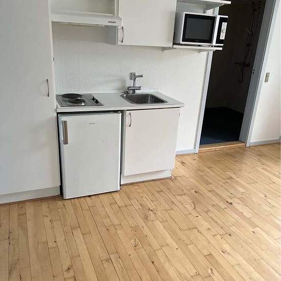 A one-room apartment of 27 m2 located in Struer for rent. Close to the harbour. There is a shared laundry and parking. Rent 2600 plus 450 in advance for heating and electricity.