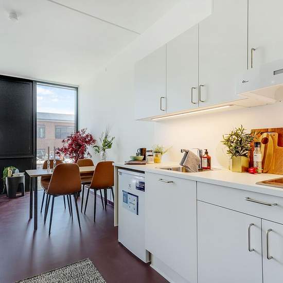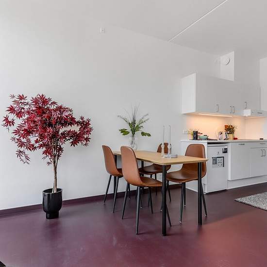 Now you can get a new home in Blækhus Valby M. The unique project located in the Valby Maskinfabrik area consists of 125 attractive one-room apartments. The apartments are well laid out and constructed with high-quality materials. The style is modern with rustic concrete walls in the hallways, high ceilings, an own kitchen and a roof terrace on the topmost residences. Why live in Blækhus Valby M? - Central location - Spacious one-room apartment - A modern expression - High ceilings - Large window sections Note - The photos were taken in a sh...
