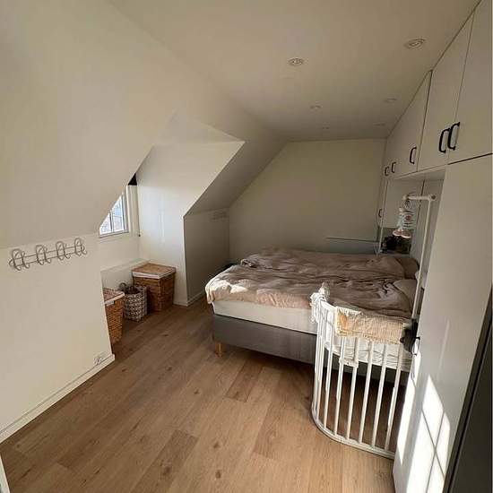 Rental period: 5/1 - 2/2, or by arrangement with me. The apartment is an 84 m² top-floor (attic) apartment in Vanløse, which was fully renovated in April 2025. It is on the third floor and has no elevator. The bedroom has a double bed (180 cm) and a bedside baby cot (we also have a crib for slightly older children). There is good closet space. All baby and children’s equipment can be removed and put into storage if the tenant wishes. The living room is spacious with plenty of floor space and an extendable table. There is also a Tripp Trapp ...