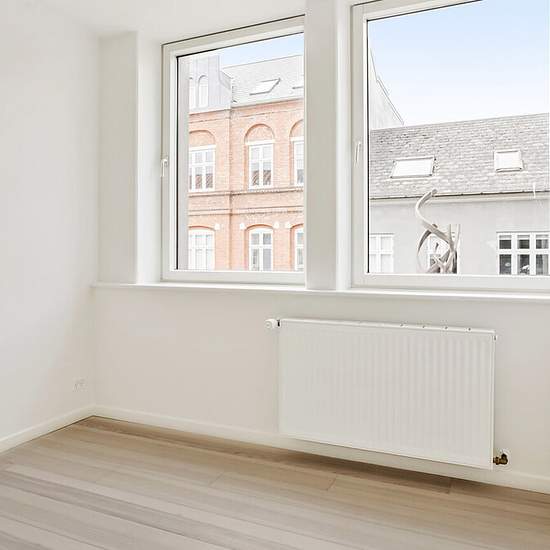 Here you can move into a newly renovated one-room (studio) apartment in the centre of Vejle. The apartment includes a bathroom with underfloor heating, washing machine, spotlights, a wall-mounted toilet and a lovely shower. A pleasant room in open connection with the kitchen. The kitchen includes a ceramic hob, a refrigerator with freezer compartment, and an extractor hood. There is access to a lovely large communal terrace. It is possible to rent a parking space at the property. Contact us today to arrange a viewing. We show viewings seven ...