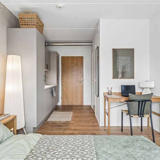 OPEN HOUSE MONDAY-FRIDAY 9:00-10:00 AND THURSDAY 15:00-16:00 - NO REGISTRATION - JUST SHOW UP AT THE TERMINAL BOOK A PERSONAL TOUR THE TERMINAL is a community and a home where you get both private space and the opportunity to be part of a strong community. Our bright studio apartments have their own bathroom, kitchenette, wardrobe, and roller blinds – you only need to bring your bed, table, and chair and give your home your personal touch with a poster or some decorations. Here there is high ceiling, both literally and figuratively. You beco...