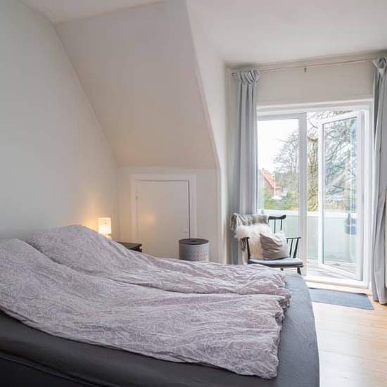 Cozy 1st-floor apartment, 60 sqm, on a quiet street in the town center. Bright west-facing living room; bedroom with access to an east-facing balcony and direct access to the shower bathroom. Bright kitchen with ceramic stove, refrigerator, dishwasher, extractor hood, and washer/dryer. Entrance hall with built-in cupboards. No pets allowed. Rent DKK 5,100. Electricity is paid directly to the utility; advance payment for water DKK 200 and for heating DKK 800. Available from 1 November 2025. Own storage room included and shared garden. Possibi...