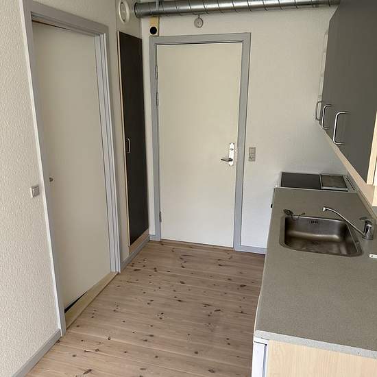 Description Bright one-room apartment with terrace The rental consists of a bright living room and a private toilet with shower. In the living room there is also a kitchen, as well as access to a small terrace. The kitchen includes a fridge/freezer, a sink, plenty of cupboard space and a stove with an extractor hood. There is a laundry room in the building; in addition, there is free parking for the building's residents and a private storage room. From the apartment there is good public transport to Aarhus C. Finally, please note that t...