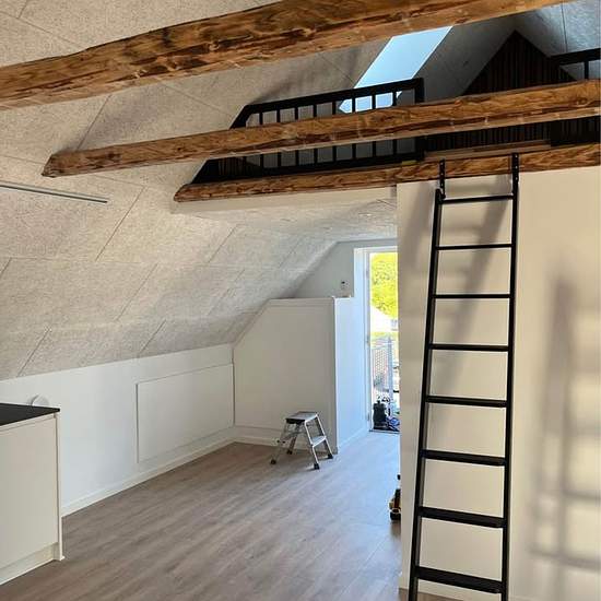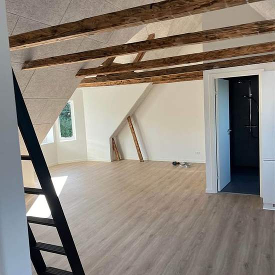 Total renovated apartment of 60 sqm Underfloor heating throughout the apartment Large kitchen-living area 1 bedroom Loft with good natural light from the skylight Bathroom with space for a washing machine and dryer Heat recovery system
