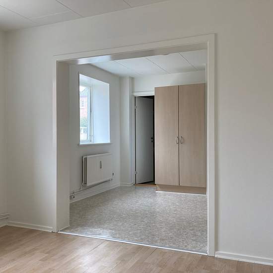 Beskrivelse 1 værelses lejlighed centralt i Bjerringbro Lejligheden indeholder: Stue, køkken og badeværelse Der er vaskeri i ejendommen. Aconto varme 350,-/md Aconto vand 150,-/md El er inkluderet i huslejen.