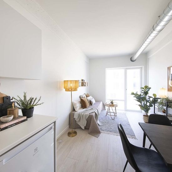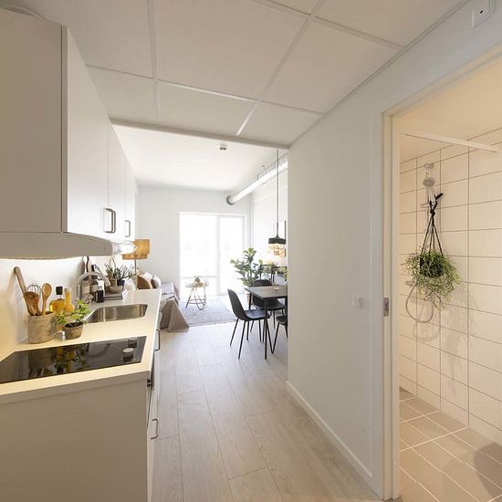 Her på Campus Aviator finder du en unik boligoplevelse, hvor fællesskab og hygge er i fokus. Boligerne består af moderne 1- og 2-værelses lejligheder, hvor der er plads til både privatliv og sociale aktiviteter. Ejendommen består af fire boligblokke, der er forbundet af den imponerende panoramabro, også kendt som "Guldbarren". På de store tagterrasser kan du nyde en fantastisk udsigt over området og slappe af i solen sammen med dine naboer. Her tilbydes en række unikke fællesfaciliteter, herunder møblerede fællesrum, et stort fælleskøkken me...