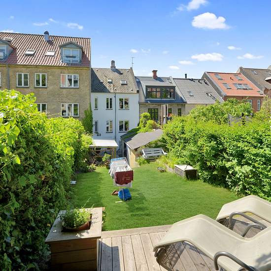 Træd ind i denne imponerende ejendom på 203 kvadratmeter, der strækker sig over stuelejlighed, 1., 2. og 3. sal. Den charmerende stuelejlighed på ca. 30 kvadratmeter byder på eget badeværelse og køkken, mens de resterende 7 værelser, 2 badeværelser, 1 toilet, 1 the-køkken og 1 køkkenalrum med moderne faciliteter som opvaskemaskine og vaskesøjle, skaber et perfekt fællesskab for beboerne. Ejendommen byder på en baghave med plads til cykelparkering samt en terrasse og et fælles overdækket udeareal, der indbyder til hyggelige stunder udendørs. ...