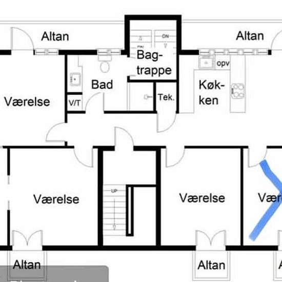 **Udlejning af værelse i en 5-værelses lejlighed på Amager med begrænset leje i 2-3 måneder fra 1. februar 2026.** Lejligheden ligger på en sidegade til Amagerbrogade. Det er en lys og nyrenoveret 5-værelses lejlighed på 112 kvm, der ligger på 5. sal. Den består af et stort køkken-alrum, samt et badeværelse med separat bruseniche, vaskemaskine og tørretumbler. Lejligheden har også 5 altaner; en på hvert af værelserne og en fælles med udgang fra køkkenet. Værelset er markeret på plantegningen (12 kvm), værelset vil være umøbleret ved indfl...