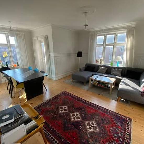 VÆRELSE UDLEJES PÅ VESTERBRO MÅ GERNE DELES Hej alle derude, Da min ene roommate flytter, skal der findes en ny lejer til hans værelse. Værelset har et dejligt lysindfald med indbygget skab og ligger i en lejlighed på 135kvm med altan. Som det kan ses på plantegningen, ligger værelset seperat fra de to andre værelser og ved siden af entréen. Du kommer til at bo sammen med Briyanth og jeg. Lejligheden har en stor stue, stort køkken med opvaskemaskine, badeværelse med seperat brus og vaskemaskine, et depot/opbevaringsrum samt en altan me...