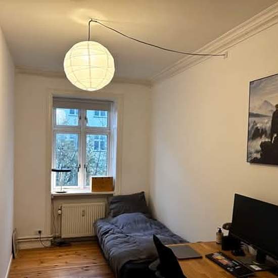 Sublet of a furnished room in Nørrebro from April 1st to April 30th. Hi! I’m renting out a furnished room in my 85 m² apartment on Guldbergsgade, Nørrebro, with move-in on April 1st. The apartment consists of 3 small bedrooms, a large living room, kitchen, bathroom, entrance/hallway, and a balcony. Rules No pets No smoking in the apartment Rent The furnished room is 12 m² and costs 5,500 DKK/month, including water, heating and internet. The only things you need to provide are a duvet, pillows and bed linen. Upon move-in there will...