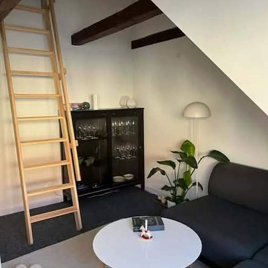 Cozy room with mezzanine Lovely room with mezzanine (space for a 3/4 mattress). Located centrally on a pleasant pedestrian street in Horsens (Jessensgade 10, 2nd floor) for rent to a female student or someone with steady employment. 5 minutes' walk from VIA. There is access to the kitchen, bathroom and laundry. Call or write for further information. Rent including utilities: 3,000 DKK. Deposit: 3,000 DKK.