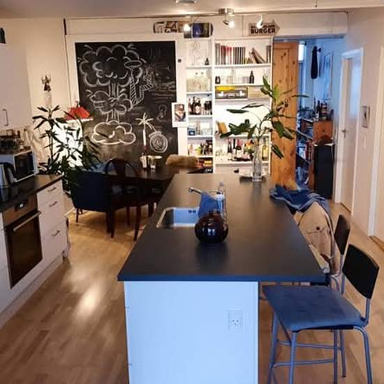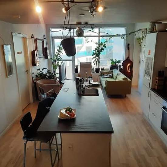 For English see the last part of the description Practical details New roommate sought for a four-person collective in Aarhus C with move-in on January 1st or otherwise as soon as possible. As our roommate Ilka is moving back to Hungary, we have a mega-nice room available. The room is 14 m². The apartment also includes a large living room, kitchen, all the latest appliances, a storage room and a lovely balcony with evening sun, usually nice drinks and a view over downtown Aarhus. The rent is 4,000 DKK (+ approx. 300 DKK in advance payments...