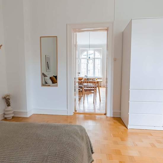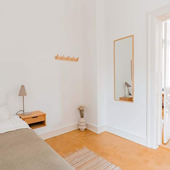 High-quality bed with bedspread, duvet and pillows. Bedside table with reading lamp. Desk with desk chair and desk lamp. Wardrobe with drawers and hanging space. Storage boxes underneath the bed. Curtains, mirror, laundry basket, trash can, rugs and decoration (not all on photos). 1) cancellation made 60 or more days before the Check-in date: For the Tenant: reimbursement of 100% of the First Instalment minus the amount of the Roomless Fees. 2) cancellation made between the 59th and 30th day before the Check-in date: For the Tenant: refund ...