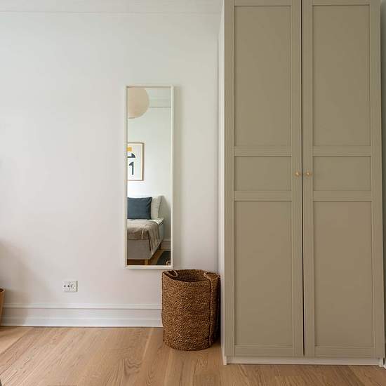 High-quality bed with bedspread, duvet and pillows. Bedside table with reading lamp. Desk with desk chair and desk lamp. Wardrobe with drawers and hanging space. Storage boxes underneath the bed. Curtains, mirror, laundry basket, trash can, rugs and decoration (not all shown in photos). 1) Cancellation made 60 or more days before the check-in date: For the tenant: reimbursement of 100% of the first instalment minus the amount of the Roomless fees. 2) Cancellation made between the 59th and 30th day before the check-in date: For the tenant: r...