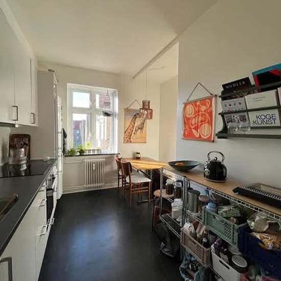 We are no longer accepting inquiries Clara and I are looking for a 3rd roommate who wants to move in with us in this beautiful apartment. We are moving in at the same time, so you will also have the opportunity to put your stamp on it together with us. Your room is 18 m², bright and lovely with a large window section and decorative ceiling moulding. About the apartment: The apartment is located on Ålborggade in lovely Frederiksbjerg. It is on the 4th floor and is 92 sqm — consisting of three large rooms, a kitchen with a shared dining ar...