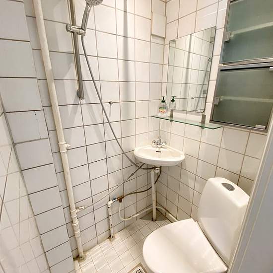 Welcome to this bright and inviting apartment, where the beautiful wooden floors run like a common thread throughout the entire residence. The living room is a large, open and light-filled space with a lovely window section that lets plenty of daylight in. There is ample room for both a seating area and a dining area, making the room the apartment’s natural gathering place. In the entryway you’ll find practical built-in closets with good storage space. From here there is access to a smaller bathroom with classic white tiles. The kitchen i...