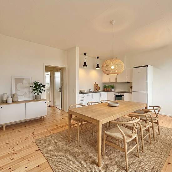 Welcome to John F. Kennedy's Square - in the heart of Aalborg! Here you get a beautiful and well-maintained 2-room apartment at a sharp rent - and with a fantastic, central location. The apartment is bright and spacious thanks to the good influx of light from the lovely window sections and beautiful floors. The kitchen has plenty of cupboard space and comes with a fridge/freezer, oven, hob and extractor hood. From the kitchen there is access to the apartment's living room and dining room, where there is plenty of space for both a dining ...