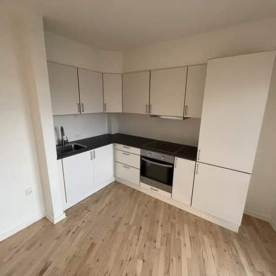 Lovely 2-room apartment with elevator near Aalborg city centre Well-maintained apartment with a good room layout. In the entrance hall there are built-in cupboards for outerwear and storage. The bathroom is nice and spacious, bright and modern. The kitchen/living room is relatively large and has access to the balcony, which faces west and therefore gets plenty of sun. There is a dishwasher in the kitchen. There is also a bedroom with space for a double bed. The building is located right next to Østre Anlæg, so it’s not far from green areas...