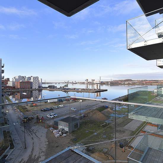 Velkommen til denne moderne lejlighed – beliggende på 9. sal med smuk udsigt over havnebassinet og fjorden i Aalborg. Lejligheden er klar til indflytning den 1. januar 2026. 79 m² med lys og moderne indretning Kæmpestort køkkenalrum med hvidt inventar Stue med store vinduespartier og adgang til vestvendt altan Stort soveværelse og badeværelse med bruseniche Gulvvarme og flotte egetræsparketgulve Depotrum i kælderen, mulighed for parkering Boligen Denne lejlighed byder på en god entré, der fører til et rummeligt køkkenalrum, ideelt til soc...