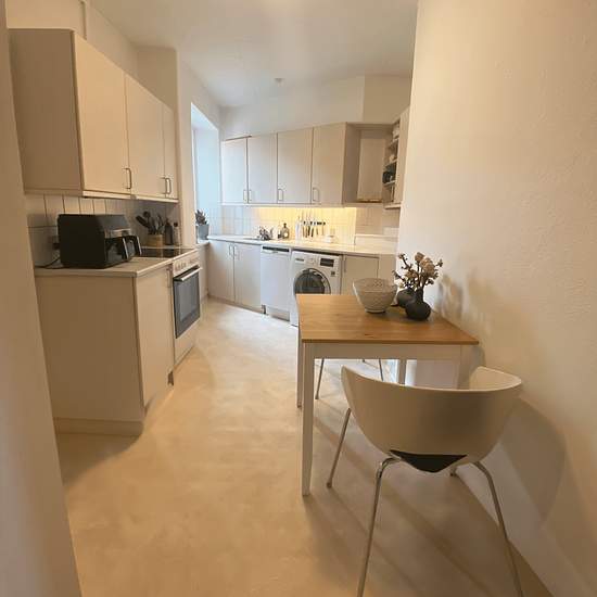 Stor og lys to-værelses lejlighed i Aalborg Vestby! Indretning: Når man kommer ind i boligen, er entréen det første man møder, herfra er der adgang til alle lejlighedens rum. Soveværelset er lyst og rummeligt. Køkkenet har ligeledes en god størrelse med plads til alt det nødvendige. I lejligheden findes også en stor og lys stue med store vinduespartier, hvor der er rig mulighed for at have både spisebordsarrengement og sofaområde. Dette store rum står lyst og indbydende, da de store vinduer tillader at solens stråler kan komme ind. Badevær...