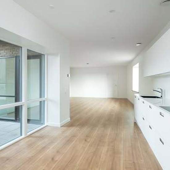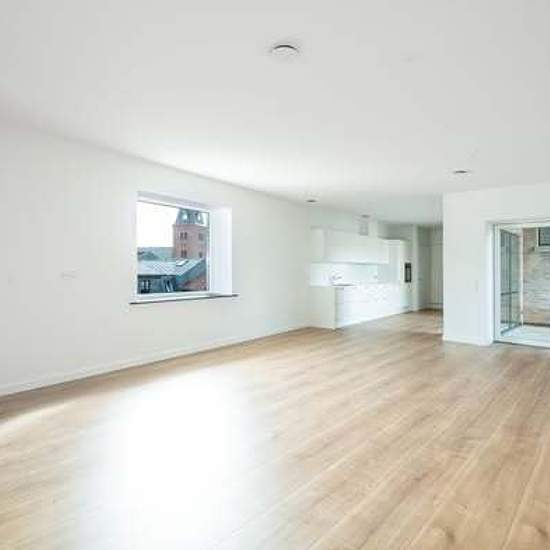 Lejlighederne er indrettet som en stor 2-værelses lejlighed på 140 kvm. Lejligheden indeholder entré med faste skabe. Herfra er der adgang til lejlighedens store lyse køkken/alrum. SVANE køkken med alt i hårde hvidevarer. Der er fra lejlighedens stue adgang til overdækket terrasse som vender ud mod Sallings gårdplads. Stort badeværelse med bruseniche, SVANE elementer, badekar, vaskesøjle samt indbygget spejl. Gang med indbyggede skabe. Rummeligt soveværelse beliggende ud mod bagsiden af ejendommen. : 11.995 kr./md. : 1.000 kr./md. nu ell...