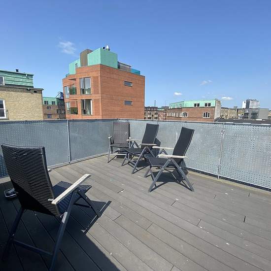 Welcome to Vesterbro 62A. Here you get a modern apartment centrally located in Aalborg. You step into an open kitchen/dining room. From here there is access to the rooms and the bathroom. The kitchen is modern and equipped with all appliances, including a dishwasher. The bathroom also meets today's standards, is a good size, and has a separate shower cubicle. As an extra bonus, you have access to the building's communal rooftop terrace.