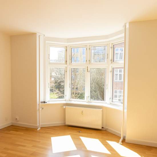 Moderniseret 2-værelses lejlighed beliggende en høj stue. Lejligheden har køkken i åbnet forbindelse med stue/spisestue rummeligt badeværelse og lyst soveværelse med god plads.