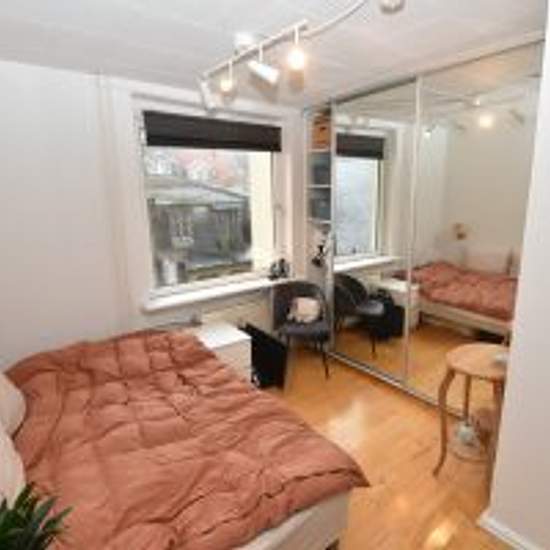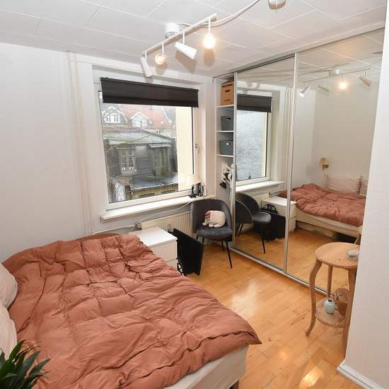 Billig lejlighed i Aalborg centrum Stue med plads til spisebord, sofa og tv! Værelse med plads til seng, skrivebord og skabsplads Badeværelse med bruseniche! Lejligheden overtages som beset! Husdyr ikke tilladt Trappevask er inkluderet i huslejen