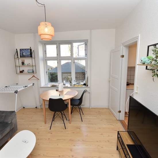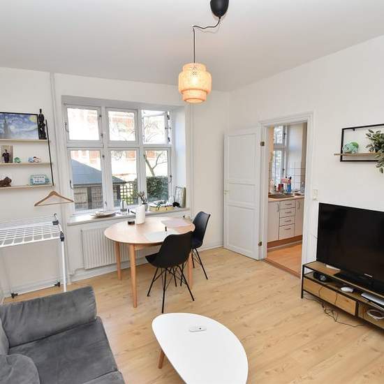 God 2 værelses lejlighed beliggende centralt i Aalborg centrum tæt på grønttorv, gågadesystemet og indkøbsmuligheder. Lejligheden er indrettet med fordelingsgang med adgang til stue, værelse og badeværelse. Hyggelig stue mod solrig gård. Fra stuen er der adgang til pænt køkken med hvide skabselementer, komfur, køle-/fryseskab og emhætte. Stort badeværelse med hvide fliser og stor bruseniche. Lejligheden er nymalet og har et flot trægulv. Der må ikke holdes husdyr. Der er fælles vaskeri, fællesantenne med mulighed for internet og en hyggelig...