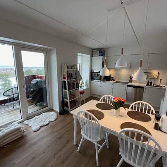 Stor 2-værelses lejlighed med altan, fantastisk udsigt og parkering! Lejligheden er 75 kvm og er beliggende på 8. sal. Der er i lejligheden installeret Svanekøkken med alle hvidevare og et moderne badeværelse, hvor der er klargjort til en vaskesøjle. Fra stuen er der adgang til en lækker altan, som er nord og østvendt og har derfor en kanon udsigt til både Golfparken og Aalborg by. Der er et stort og rummeligt soveværelse med masser af skabsplads. Der er vedligeholdelses frie gulve med gulvvarme i alle lejlighedens rum. Der medfølger en...