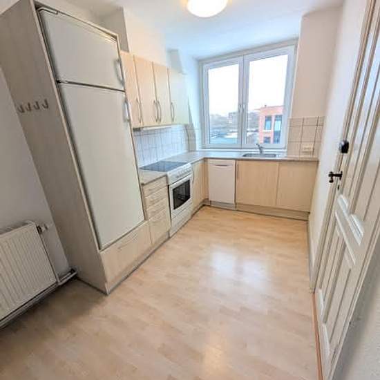 Vestbyen, Parking, Large bathroom, Dishwasher Ny Kastetvej 26, 2nd floor left, 9000 Aalborg Bright 2-room apartment in Vestbyen with ornate plaster ceilings, dining space in the kitchen and free parking – close to the marina Welcome to a well-maintained 2-room apartment of 66 m2 in the attractive Vestbyen, close to the harbour area by the marina and everyday conveniences. Here you get a bright home that is ready to move into. The apartment offers an inviting living room with beautiful plank floors that give the room character and warmth....