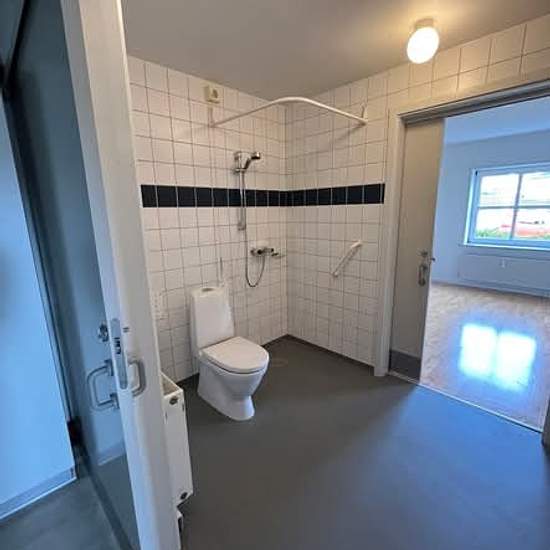 Luminous, spacious and accessible 2-room apartment near Aalborg Storcenter! Live in Aalborg SV with Aalborg Storcenter, supermarket, fitness and sports facilities right nearby. Close to bus stops and stations and with easy access to the motorway – perfect for everyday life in City Syd. Photos from similar rentals. Stationsmestervej 3, ground floor, 9200 Aalborg SV 2-room ground-floor apartment 70 m² White kitchen with ceramic hob, oven and fridge/freezer Spacious bathroom with tiles and vinyl floor Accessible – sliding doors and plenty of...