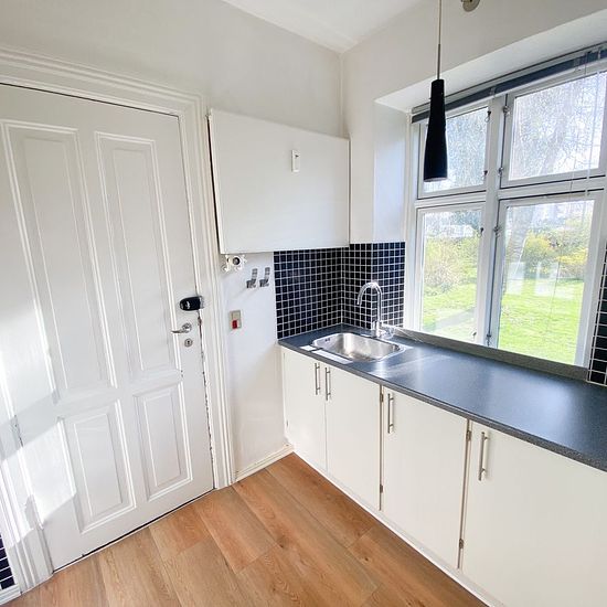 This apartment consists of a living room with a corner for outerwear and shoes. The room has some nice windows, allowing plenty of light to flow in. The room is also very easy to furnish. There are good wooden floors throughout the living room and bedroom, giving a beautiful authentic look. From the living room, you enter the bedroom, from which there is access to the bathroom. The bathroom is nicely white, and despite its small size, still has the possibility to separate the shower area with a curtain rod. The bedroom and kitchen have win...