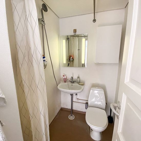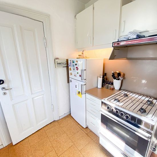 This apartment consists of a living room with a corner for outerwear and shoes. The room has nice windows that let in plenty of light. The room is also very easy to furnish. There are good wooden floors throughout the living room and bedroom, which give a beautiful authentic look. From the living room you go into the bedroom, from which there is access to the bathroom. The bathroom is nicely white, and despite its small size still has the option to separate the shower area with a curtain rod. The bedroom and the kitchen have windows overloo...