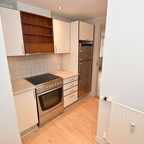 Welcome to this apartment where light and quality meet a central location in Aalborg. A move-in ready home with a pleasant atmosphere. The apartment offers an open entrance that provides a warm welcome with space for outerwear. The fine kitchen is equipped with modern facilities such as a glass-ceramic cooktop, built-in oven, and extractor hood, making cooking a pleasure. The living room has a lovely influx of light, and the bedroom has space for a double bed and a wardrobe. The bathroom is furnished with underfloor heating, tiles in stylis...