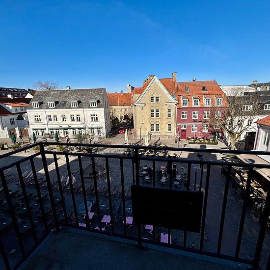 Velkommen til denne lejlighed hvor lys og kvalitet møder en unik beliggenhed. En indflytningsklar bolig med en behagelig atmosfære. Lejligheden byder på en rummelig entré, der fører dig til et lyst køkken-alrum i åben forbindelse med stuen. Her er et behageligt lysindfald, og de skrå vægge samt synlige loftsbjælker tilføjer en hyggelig karakter. Fra stuen er der udgang til en altan, hvor du kan nyde den smukke udsigt over C. W. Obels Plads og byens liv. Boligen rummer desuden et soveværelse med skabsvæg samt en rummelig hems med ståhøjde, ...