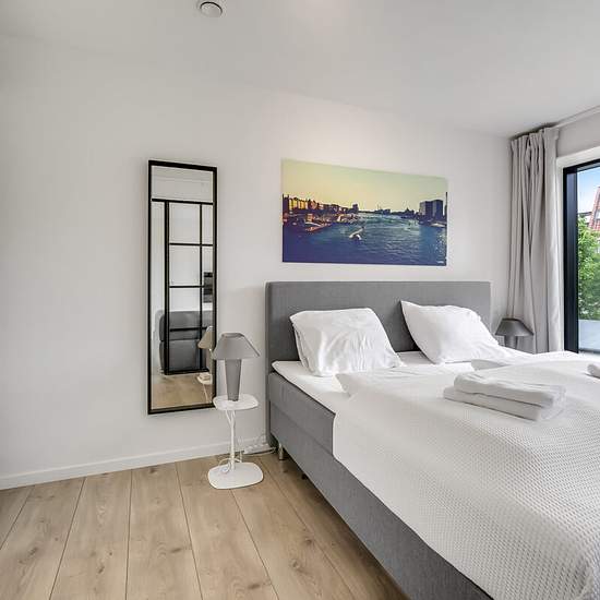 Description Inviting apartment in a quiet courtyard setting – in the Øgadekvarteret, right in the centre of Aarhus C Set back from the city's bustling streets is this atmospheric courtyard environment with townhouses, apartments and green areas – a small, private “village” in the heart of Aarhus C. The apartment offers a spacious and bright living area with an open-plan kitchen and living room. The large bedroom is fitted with built-in wardrobes and has direct access to a private terrace, which serves as a hidden oasis with excellent pote...