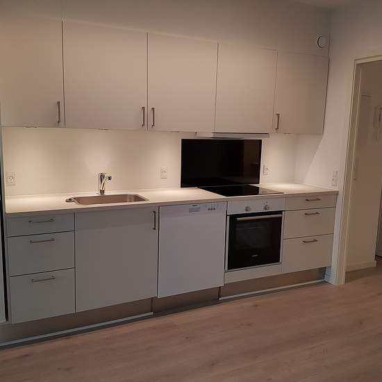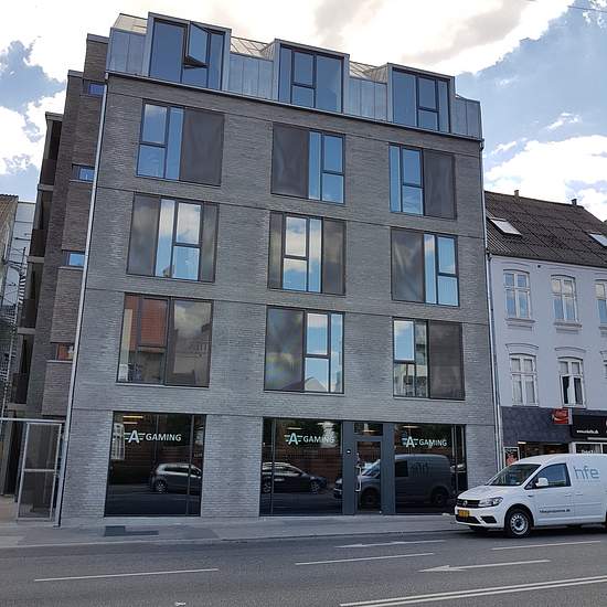 Lovely 2-room apartment with balcony in central Aarhus C The building is located centrally in the city centre, Aarhus C, and was constructed in November 2017. The property features a communal courtyard, bicycle cellar, as well as a shared roof terrace and an elevator. This apartment has a balcony. The apartments are equipped with the following appliances: dishwasher, washing machine and tumble dryer. In addition, a storage room belongs to the tenancy.