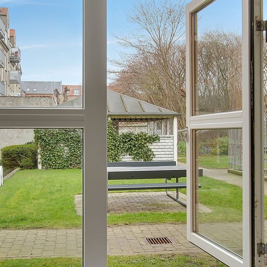 The rental is bright, inviting and easy to furnish, and it is possible to share it with two friends. It is very centrally located and also faces a lovely green area. This property is definitely worth a visit. There is the possibility to rent a parking space in the underground garage, there are bike sheds available for free use and in addition there is a nice room that can be rented for events.