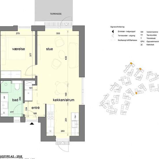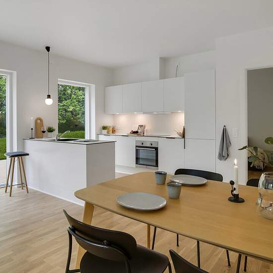 Information about the building and the area Bright and modern two-room apartment in a new residential area Welcome to Vistihøjen, a modern residential area focused on quality, green surroundings and good neighbor relations. The two-room apartments are fitted with a kitchen and all major appliances: dishwasher, washing machine and tumble dryer, as well as underfloor heating and a modern bathroom. Several units have their own balcony or terrace, and all are located in a quiet neighborhood with short distances to everyday amenities. The light ...