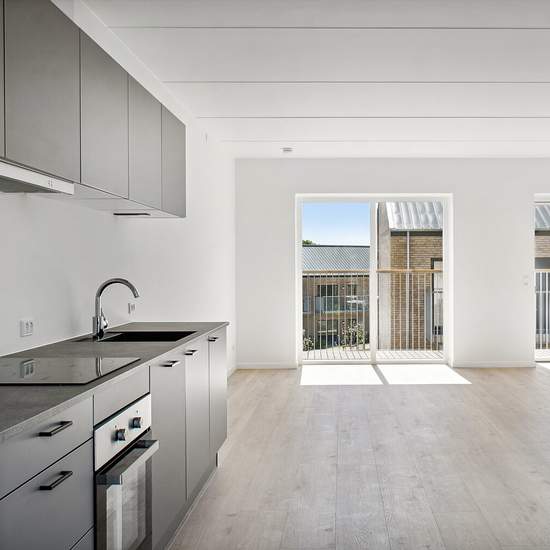 Welcome to Fortehusene. Perfect two-room apartment in a quiet setting. A large open-plan kitchen/dining area with a nice dining space and a sofa seating area. In addition, a proper bedroom with many good furnishing/layout possibilities, and a large bathroom. You also get your own terrace here. A dishwasher is installed and the apartment is prepared for both a washing machine and a tumble dryer. Lisbjerg - there is a light rail stop 100 m from the development, good bus connections, Lisbjerg School and daycare facilities are 200 m away, an exc...