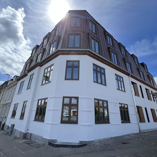 Here you get a beautiful 2-room apartment, where attention has been paid to the details – including large, soundproof window sections that ensure a wonderful influx of light. The home offers an inviting kitchen-living room with modern appliances, including a fridge/freezer, dishwasher, ceramic cooktop, and built-in oven. From the living area, there is access to a spacious room as well as a stylish bathroom with a combined washer/dryer. The building offers shared terraces on each floor and a practical storage room in the basement. The loca...